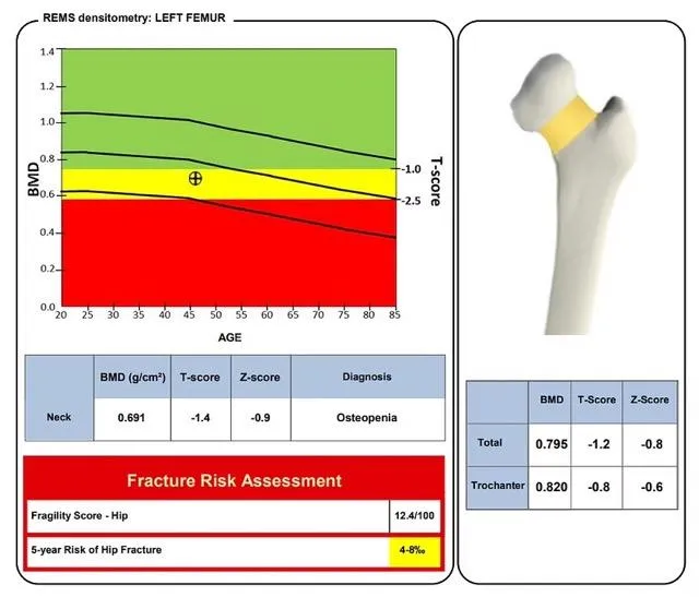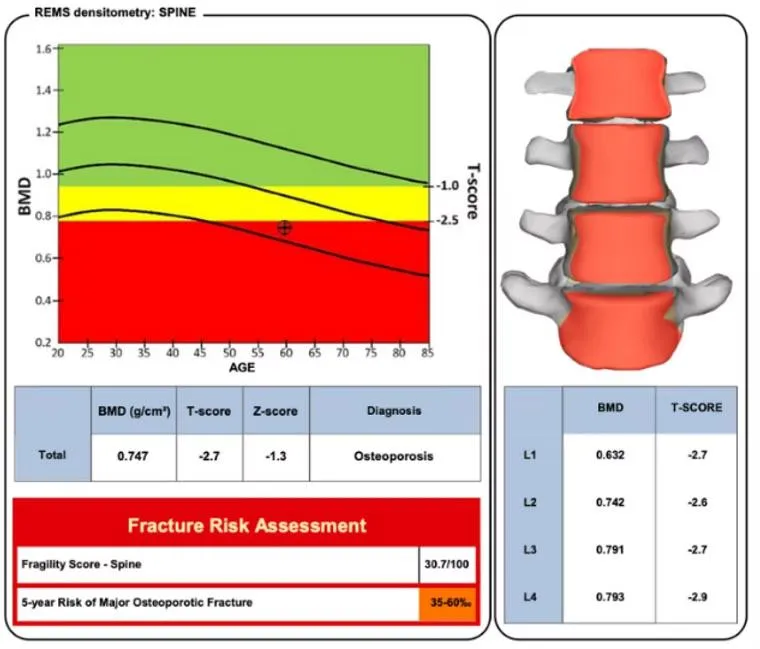 Echolight® REMS (Radiofrequency Echographic Multi Spectrometry) is an advanced, ultrasound-based technology that allows us to assess bone health safely and comfortably — without radiation. Unlike traditional bone density scans, Echolight REMS measures both bone density and bone quality, providing a more complete and accurate picture of overall bone strength, which you can asses more frequently.